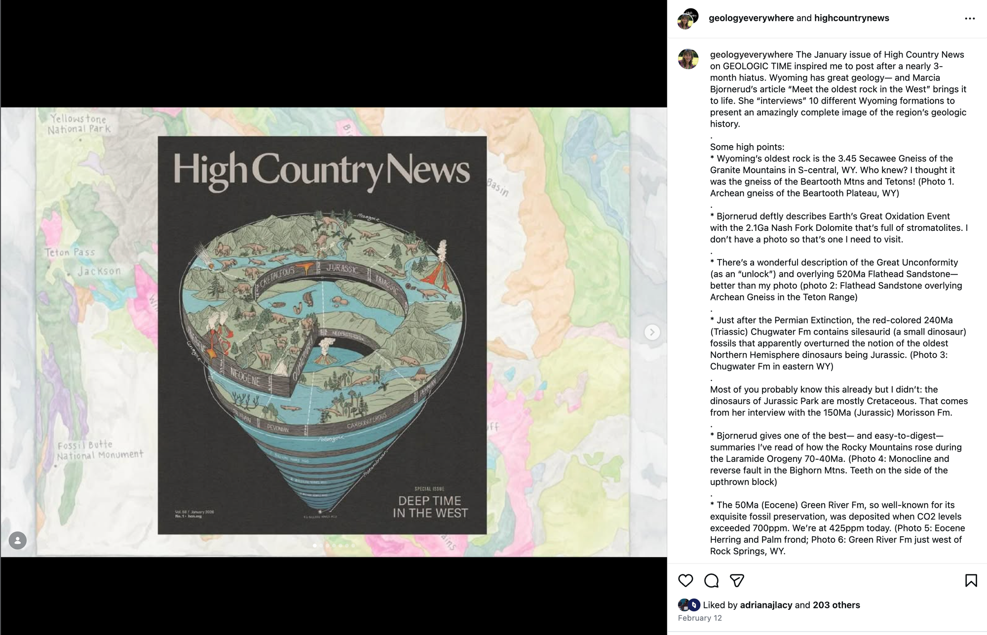 Marli Miller (@geologyeverywhere) is a senior instructor and researcher in the Department of Earth Sciences at the University of Oregon. She’s authored multiple books, including Roadside Geology of Oregon and Roadside Geology of Washington. Her website, geologypics.com, offers free downloads of more than 5,000 geology photographs for educational use. And on Instagram, she’s built an audience of over 26,000 followers who come to her for accessible, beautifully photographed geology content from Wyoming’s oldest rock formations to the story of how the Rocky Mountains rose.